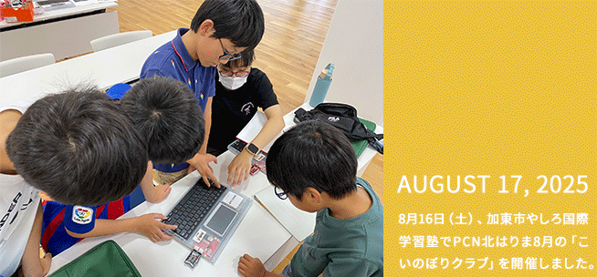 8月16日(土)、加東市やしろ国際学習塾でPCN北はりま8月の「こいのぼりクラブ」を開催しました。