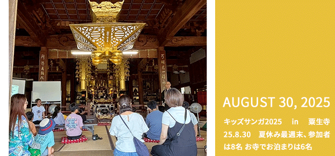 キッズサンガ2025 in 粟生寺 25.8.30 夏休み最週末、参加者は8名 お寺でお泊まりは6名