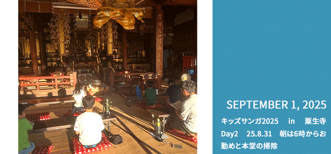 キッズサンガ2025 in 粟生寺 Day2 25.8.31 朝は6時からお勤めと本堂の掃除