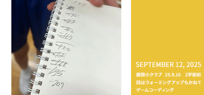 服間小クラブ 25.9.10 2学期初回はウォーミングアップもかねてゲームコーディング