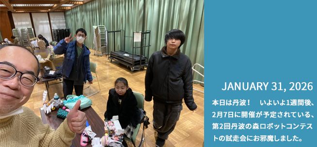 本日は丹波! いよいよ1週間後、2月7日に開催が予定されている、第2回丹波の森ロボットコンテストの試走会にお邪魔しました。