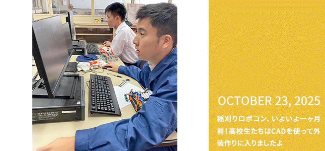 稲刈りロボコン、いよいよ一ヶ月前!高校生たちはCADを使って外装作りに入りましたよ