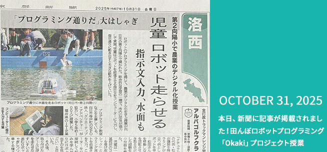 本日、新聞に記事が掲載されました!田んぼロボットプログラミング「Okaki」プロジェクト授業