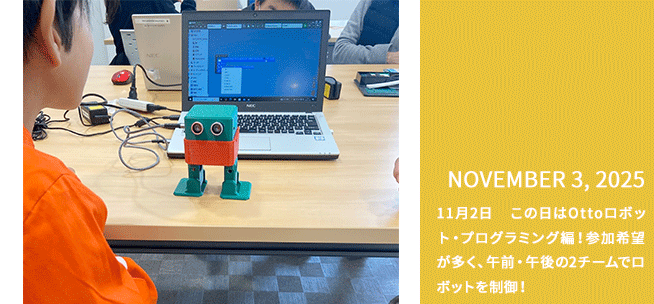 11月2日 この日はOttoロボット・プログラミング編!参加希望が多く、午前・午後の2チームでロボットを制御!