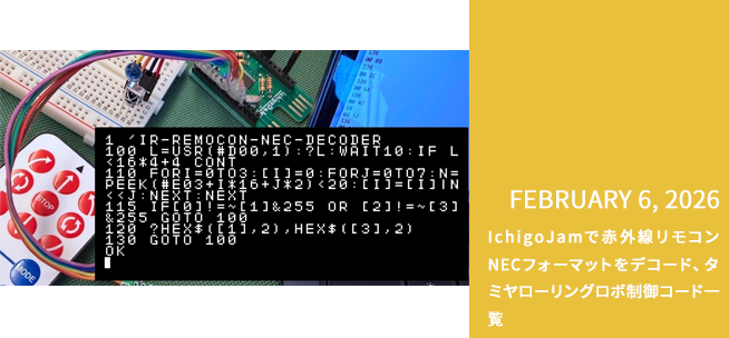 IchigoJamで赤外線リモコンNECフォーマットをデコード、タミヤローリングロボ制御コード一覧