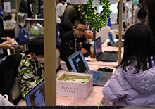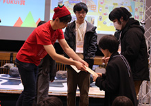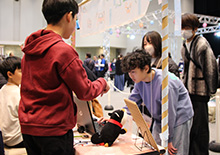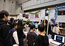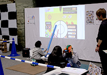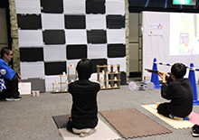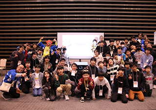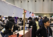 春の訪れを感じさせる暖かな陽気の中、敦賀市プラザ萬象大ホールにて「PCNこどもプログラマーフェア in TSURUGA」が開催されました。今回は初となる「第2回ご当地こどもロボコン全国大会」との同時開催。自慢のプログラム作品やロボットを手にしたこども達が、会場に数多く集まりました。 今回の会場テーマは「お祭り」。展示スペースには屋台が並び、作品がずらりと展示されました。作品はもちろん、スペースや屋台の装飾もすべてこども達自身が手がけており、個性豊かでカラフルな空間が広がっていました。