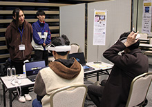 会場内では、誰でも参加できるプログラミングワークショップも実施されました。今回は「お祭りの縁日」をテーマにしたゲームが用意され、カムロボが的を守る射的ゲームや、スクリーン上の太鼓をリズムよく叩くゲーム、簡単なゲームをプログラミングできるコーナーなど多彩な体験が並び、こども達は夢中になって楽しむ様子を見せていました。 さらに、サイバー犯罪対策を遊びながら学べるワークショップも実施。こちらは前回展示参加者が所属するチームによる企画で、ScratchとVRの2種類から体験でき、来場者は没入感のある体験を楽しんでいました。このほか、昨年から進化した腹筋マシンや、各地のPCNが制作したハードや基板の展示も行われました。
